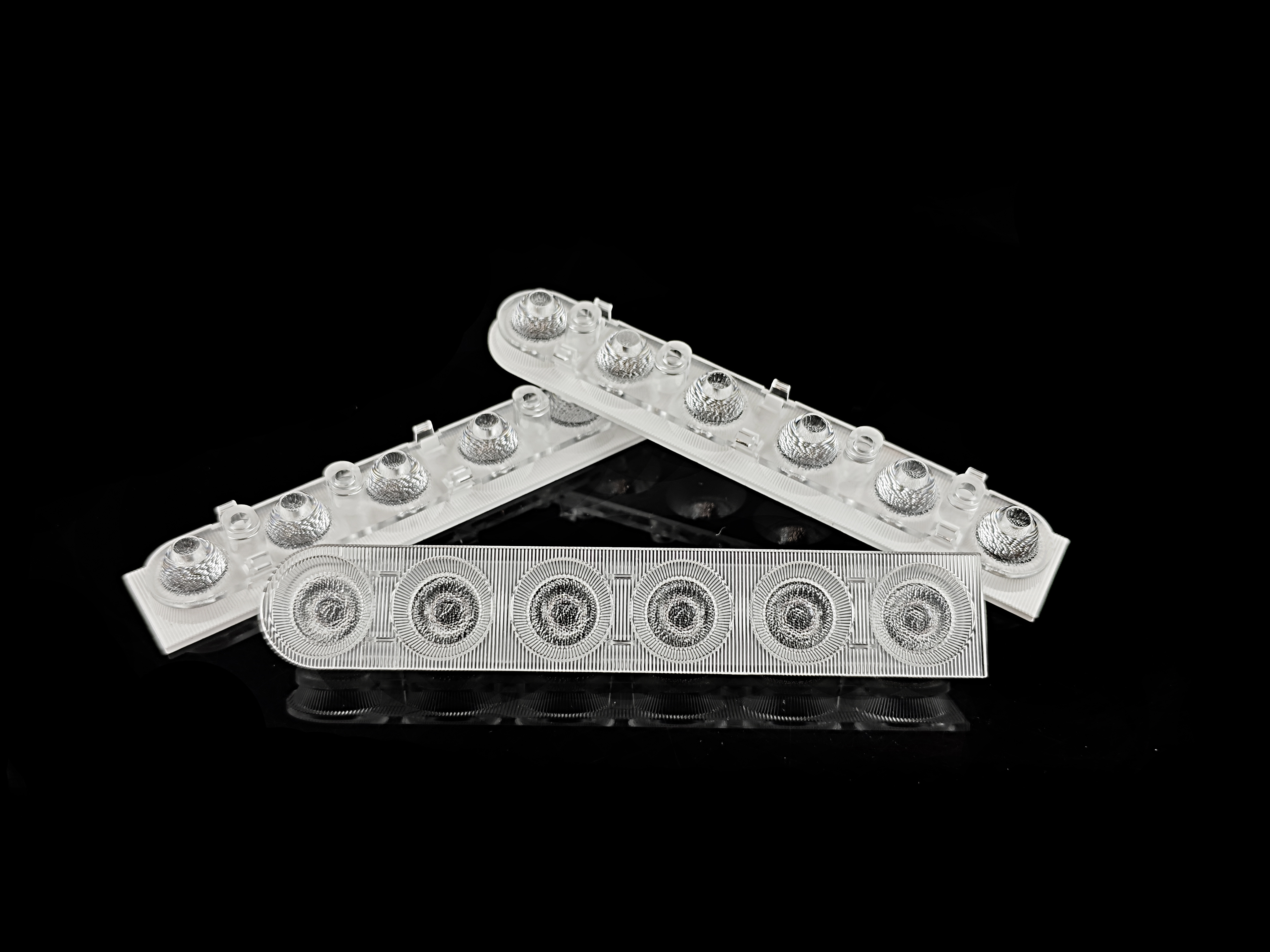 整套光学由3个零件组成:防眩罩、透镜、支架
