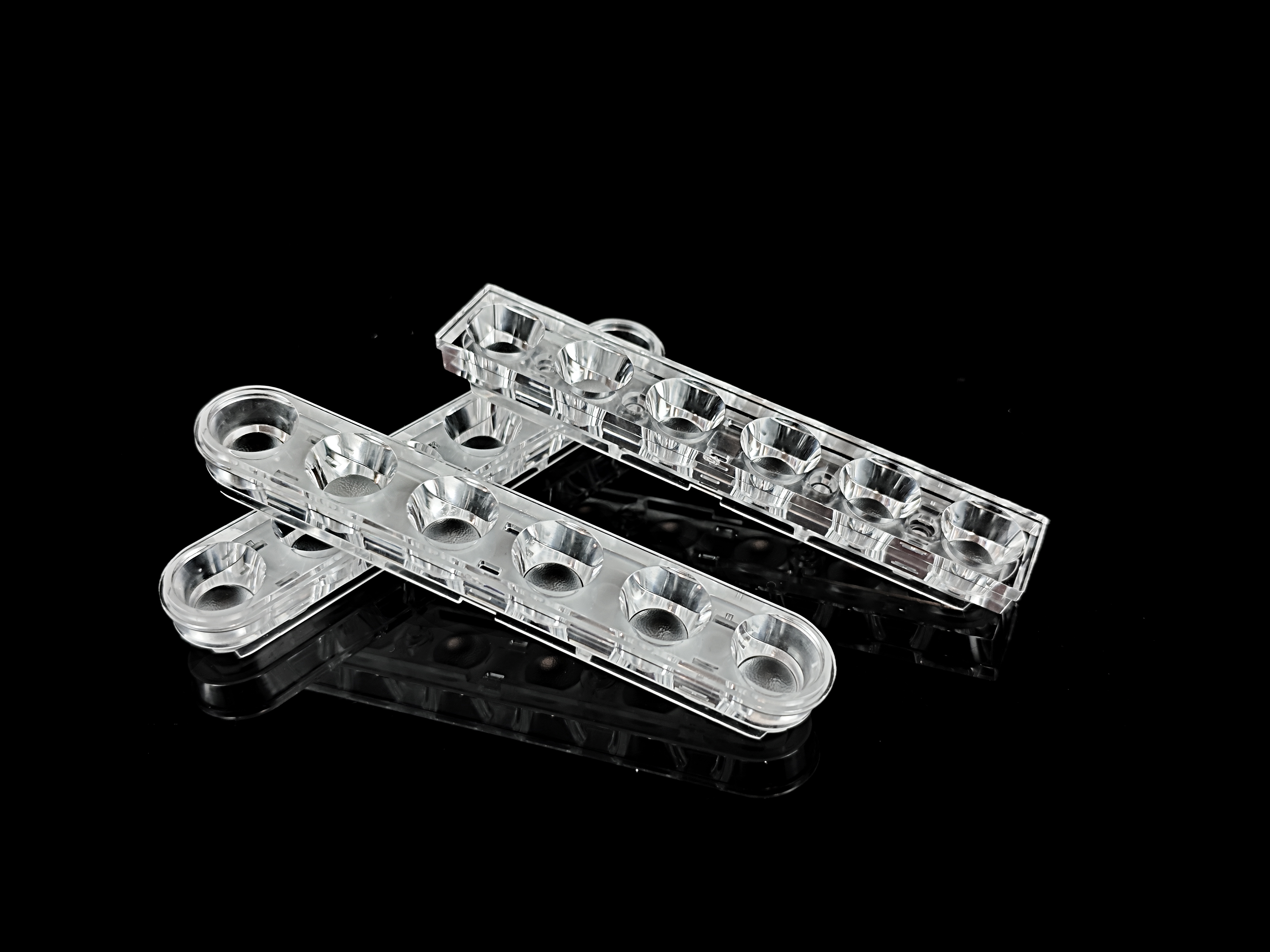 采用凸透镜结构配合细致条纹全透防眩罩