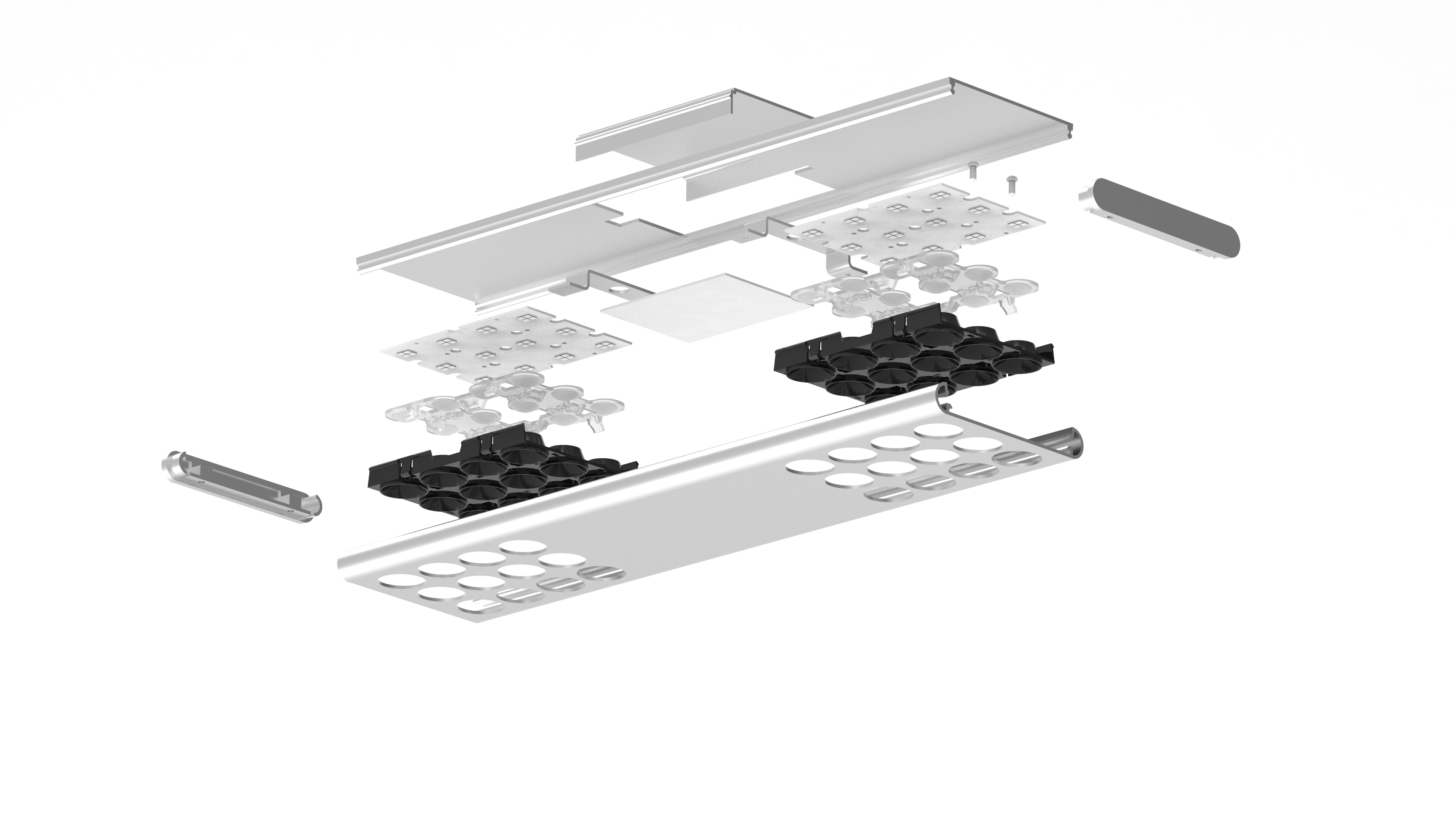 兼容灯珠:2835/3030/3535/5050/7070 LED贴片灯珠,单孔最多可排布四颗2835灯珠,兼容双色温。
