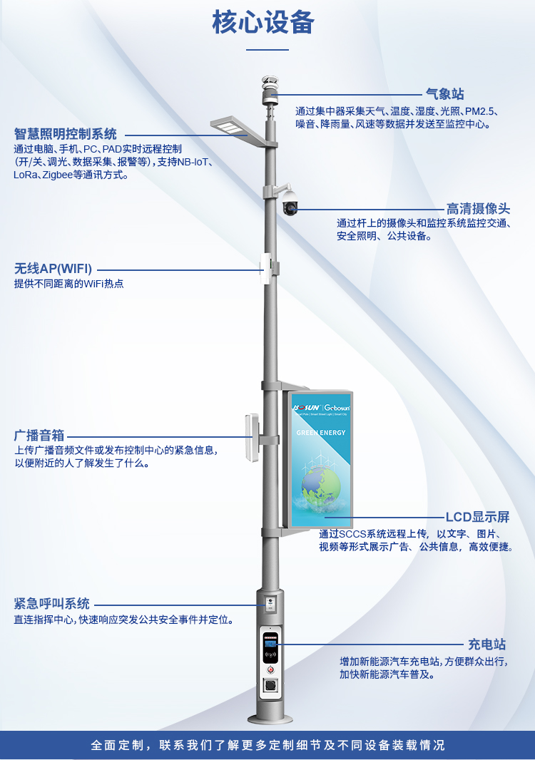 LED多功能智慧路灯城市主杆道物联网监控一体杆