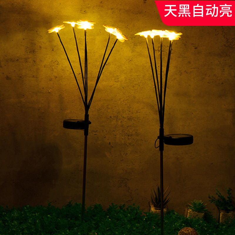 跨境太阳能地插灯户外庭院婚庆仿真花草坪灯氛围灯植物广告七色花
