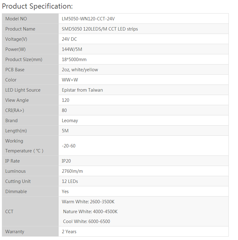 • 色温(k) 5001-6500K、4000-4500K、2600-3500K