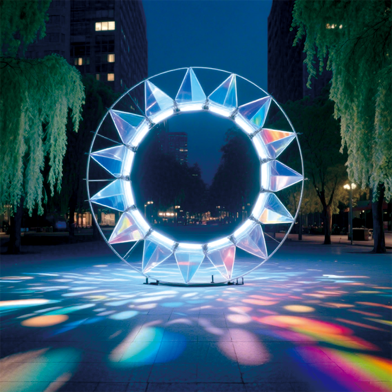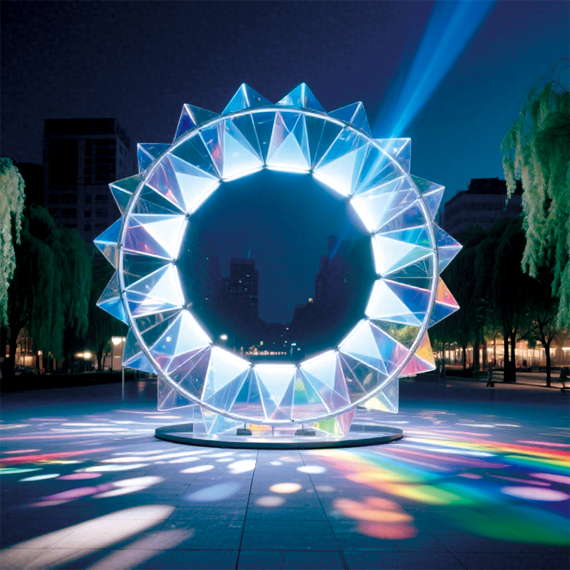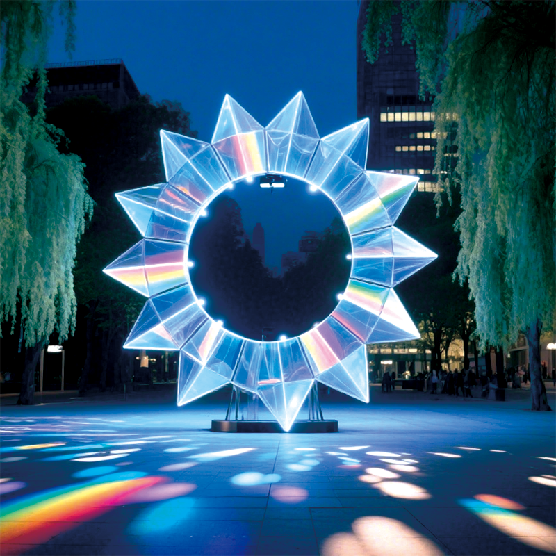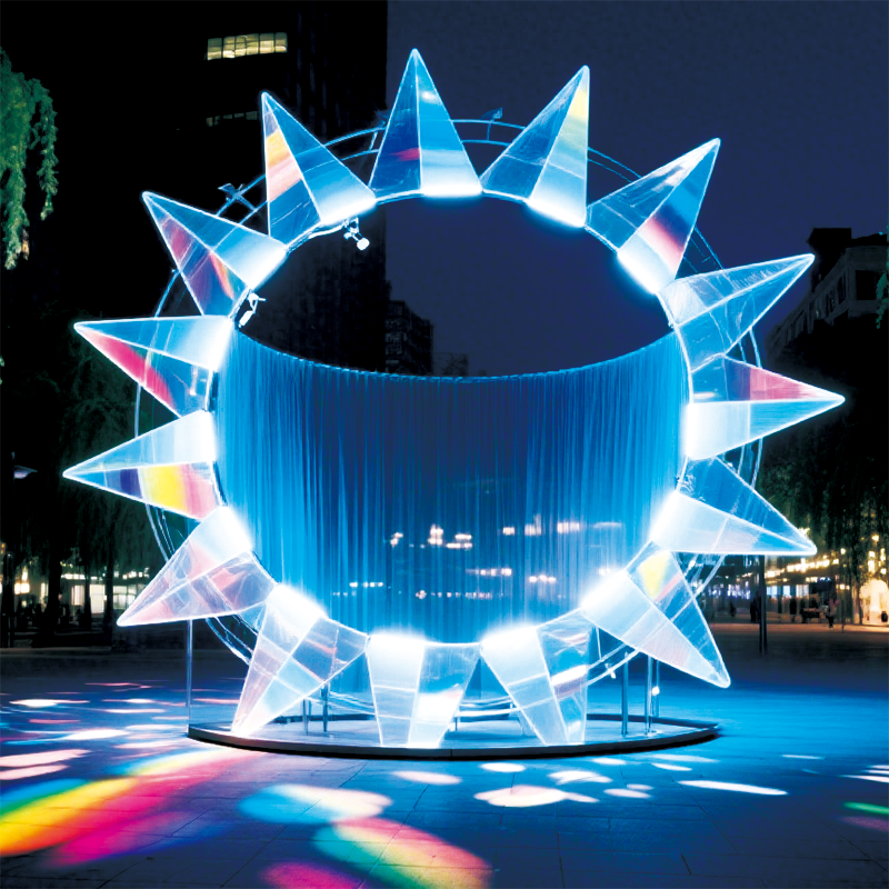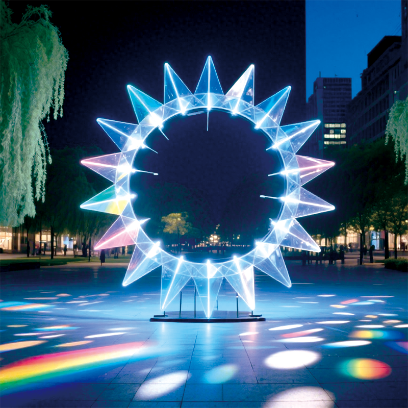 户外蓝芒星环景观装置营造梦幻且具视觉冲击力的夜景氛围