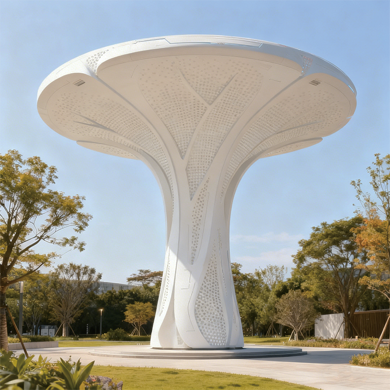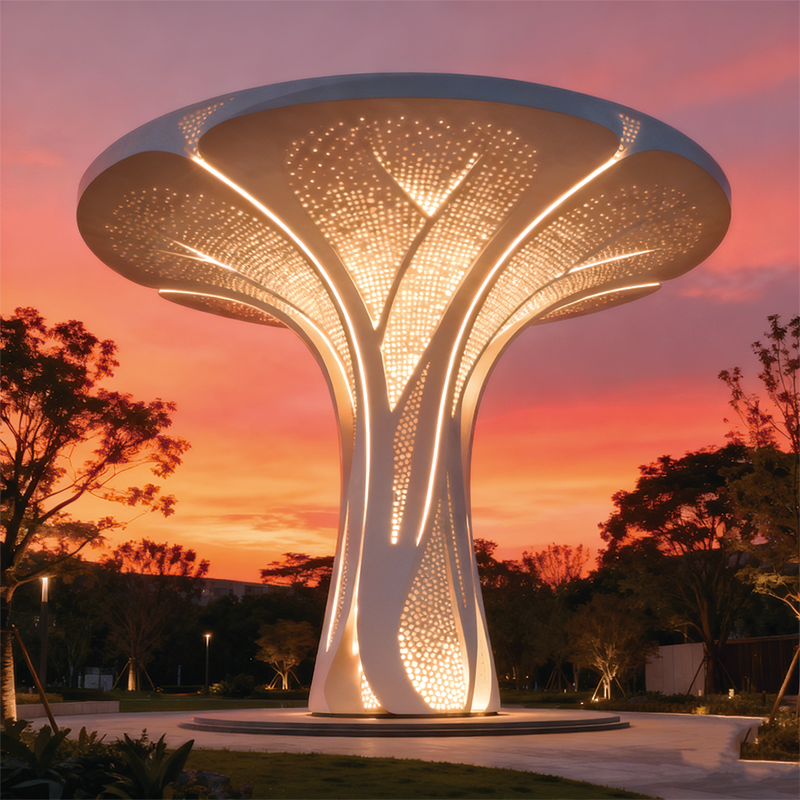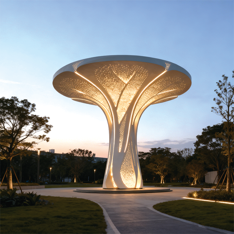 艺术造型透光景观亭:夜间照明+遮阴功能的镂空发光户外装置