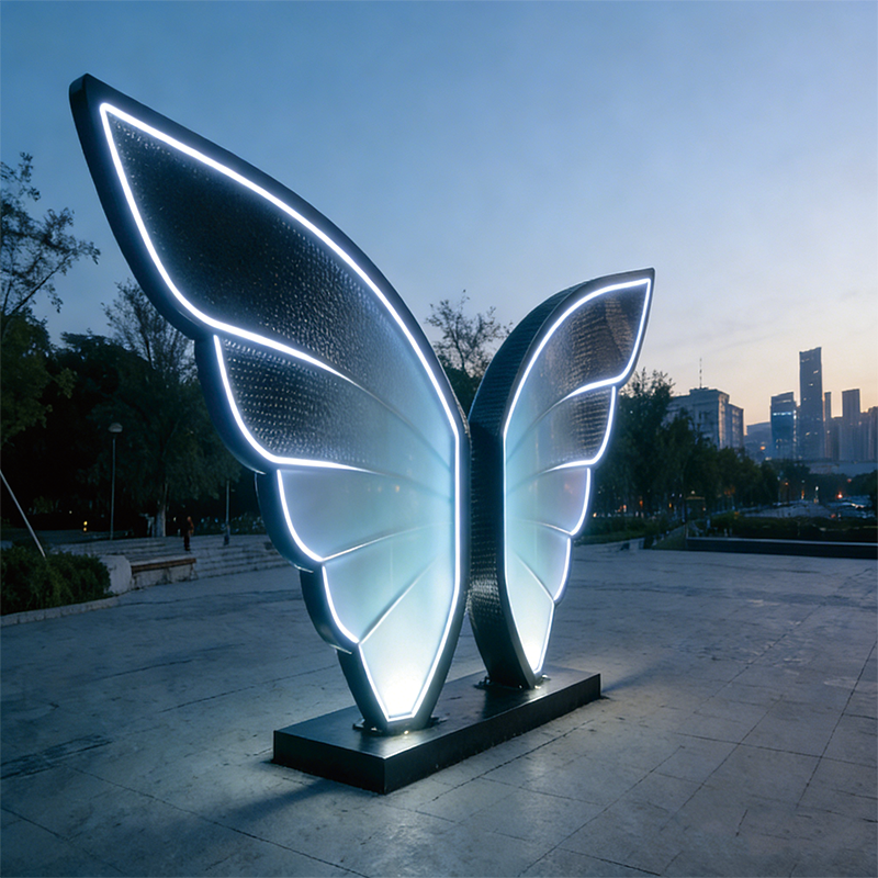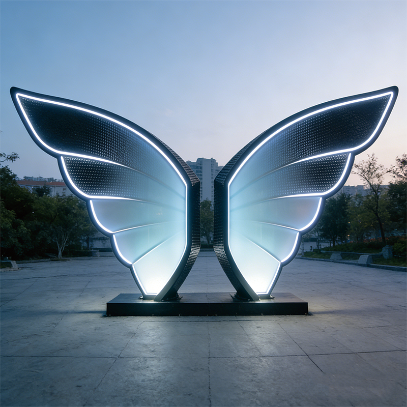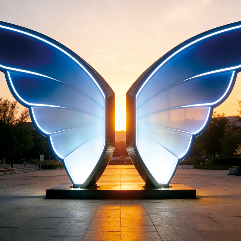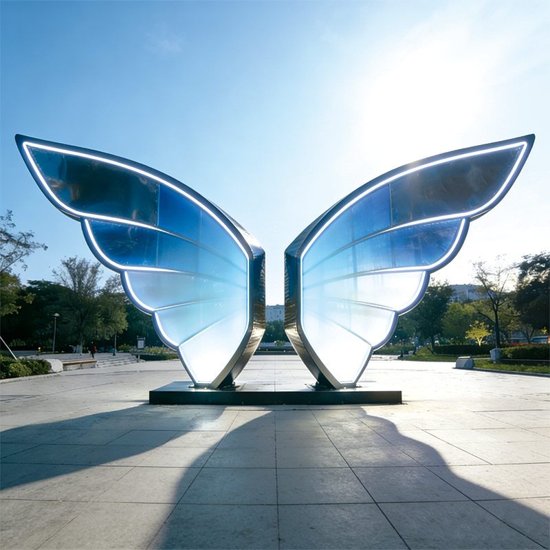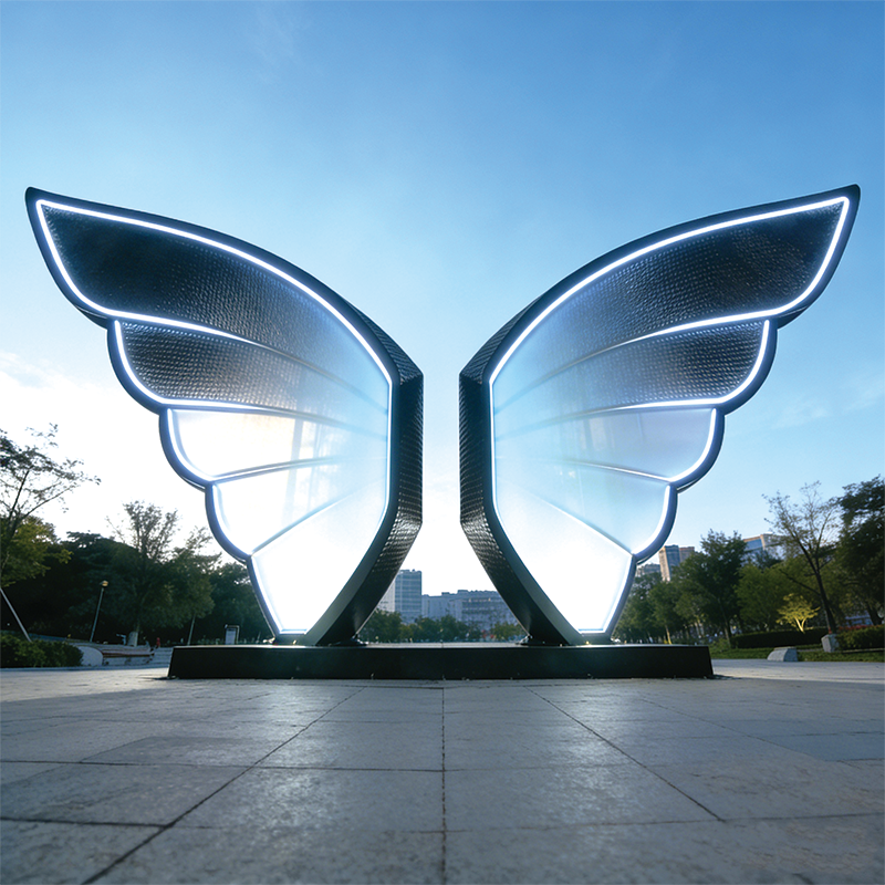 LED 天使之翼造型雕塑灯,不锈钢景观照明