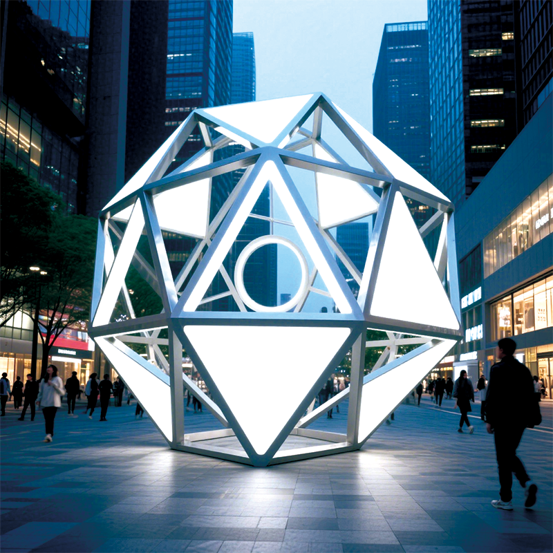 联球户外星芒几何体装置装饰展现着工业美学与光影魅力
