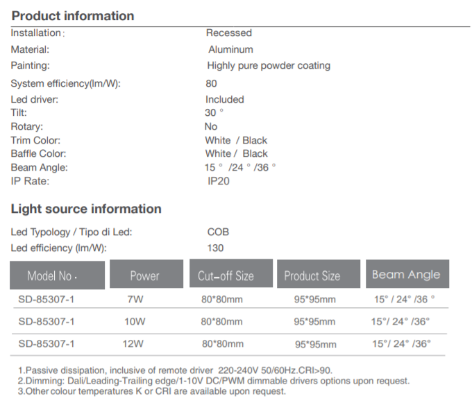 • 色温(k) ≤2800K、2801-3200K、3201-3800K、3801-4200K、4201-5000K、5001-6500K、2800~6500K可调