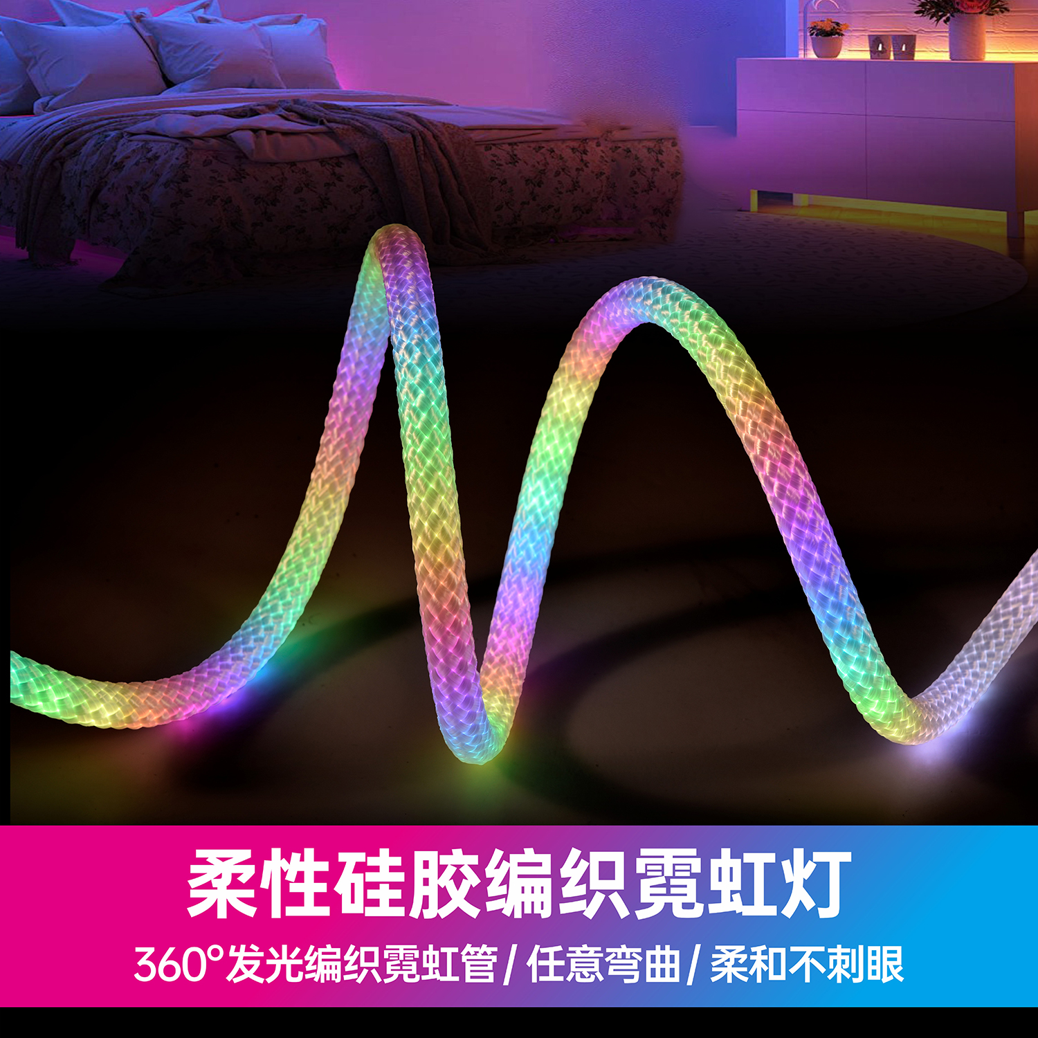 led编织霓虹灯带圆形360度发光RGB幻彩编织灯带柔性流水