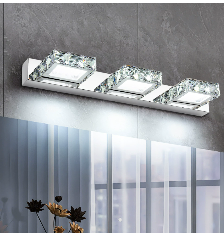 LED水晶镜前灯跨境3头时尚美规不锈钢浴室镜柜化妆镜补光壁灯