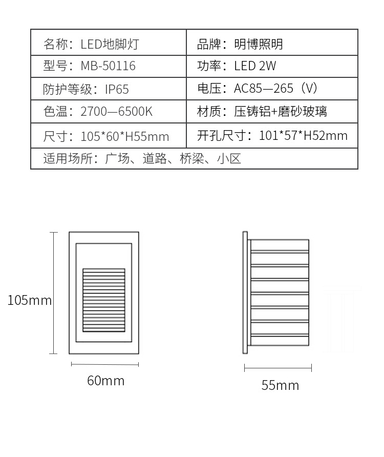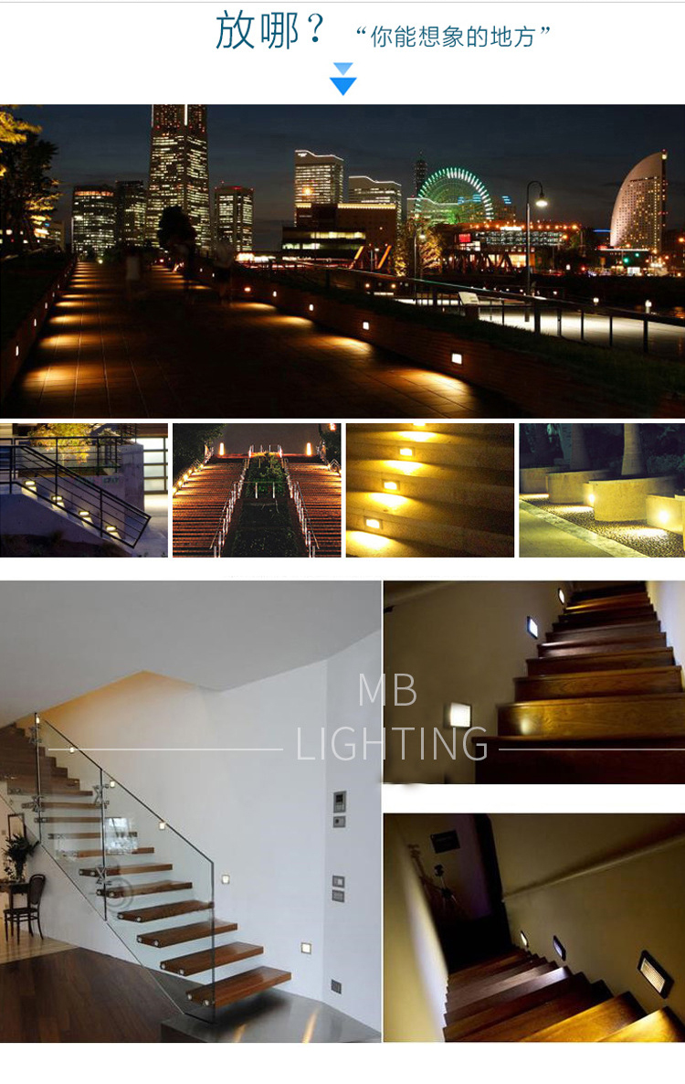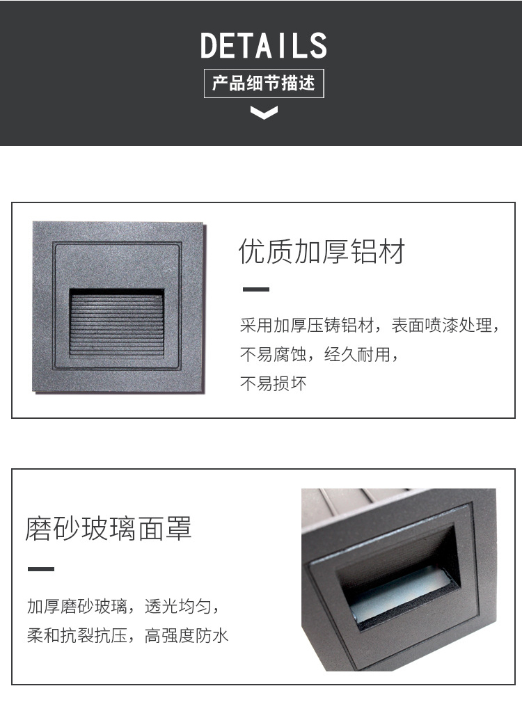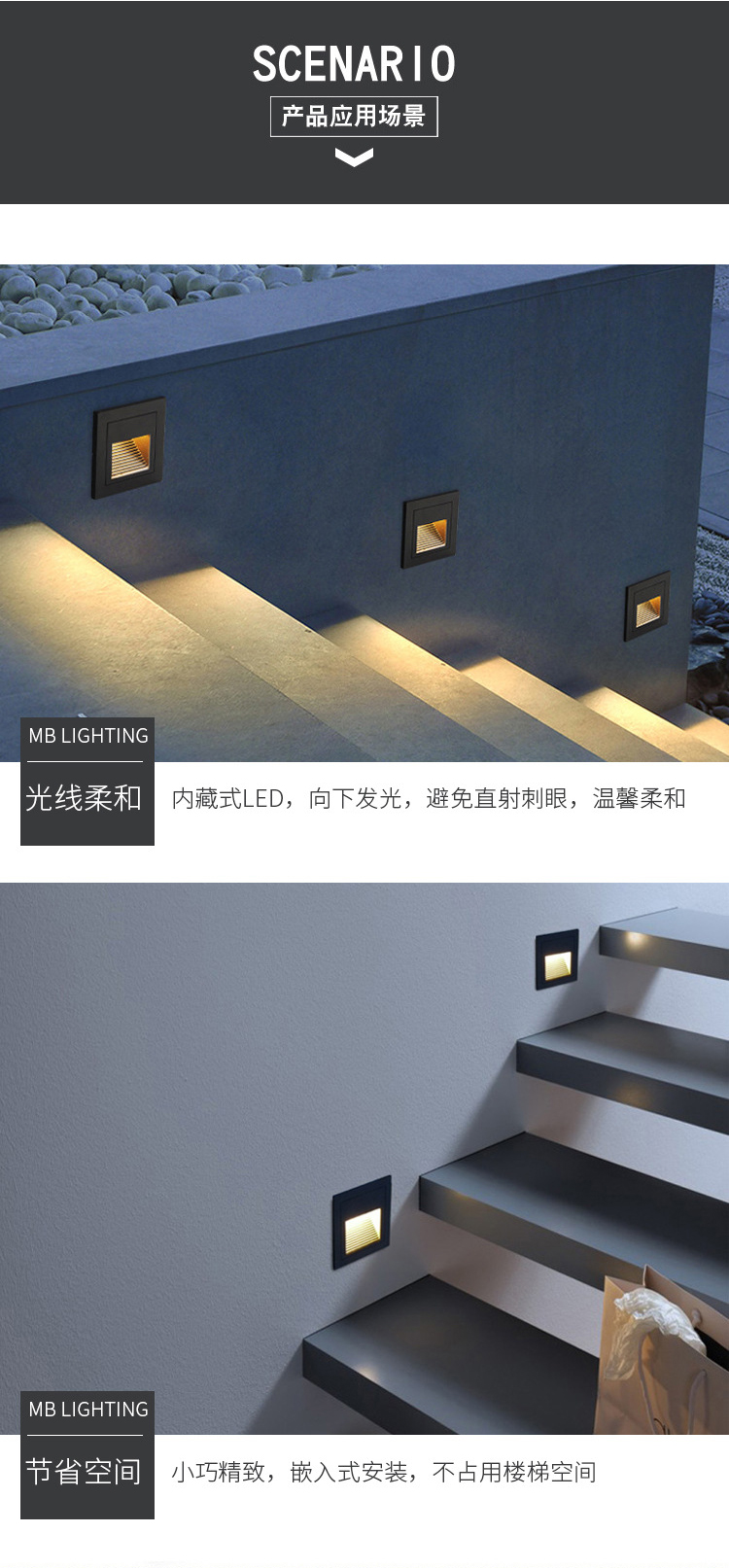 led地脚灯外壳嵌入式墙角灯过道楼梯侧壁灯明博户外防水台阶灯