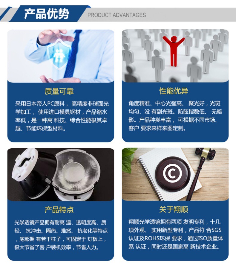 东莞市虎门美克达光学制品厂成立于2001年,公司设在东莞市虎门镇怀德大道288号,是一家专注于光学制品设计制造,是最早从事光学制品的设计,光学模具制造、注塑成型的企业之一,工厂总建筑面积5000多平方米.多台,拥有专业注塑车间,构建了包含自主设计研发制造、成型于一体的大功率LED透镜、反光杯、LED一次透镜、放大镜片、投影镜片红、绿、蓝激光透镜,望远镜镜片等照明配光产品生产体系.本公司能在五个工作日内完成光学配光设计,七个工作日内做出试样模具,能快速为客户订制光学模具。美克达具有十多年的光学制品设计制造历史,经验丰富,我们能应对所有LED光源品牌进行配光设计,目前已经针对LED光源SHARP夏普、CREE科锐、SAMSUNG三星、EDISON艾迪森、LUMILEDS流明、SEOUL首尔、BRIDGELUX普瑞、CITIZEN西铁城等品牌进行了专业独特的光学配光设计,研发出多样化且效能创新的光学透镜和反光杯,符合客户在LED照明产品上各种条件的要求。 本公司现已推出的LED透镜、反光杯系列有:路灯透镜、隧道灯透镜、工矿灯透镜、泛光灯透镜、广告灯透镜、MR16透镜、PAR30透镜、PAR38透镜,舞台灯透镜、手电筒透镜、车灯透镜、酒柜厨柜灯透镜、日光灯透镜、交通信号灯透镜、手电筒透镜、混合光透镜等,能准确达到各种角度及光型要求,实现最佳的光效.现已有(发明专利)201210009353.9正在申请认证中,(实用新型专利)201220100830.8,(实用新型专利)201220100839.9专利已获得认证。 业务员:杨小姐18029102506 王小姐:18029102505 周小姐:18029102503 李先生:13686688736