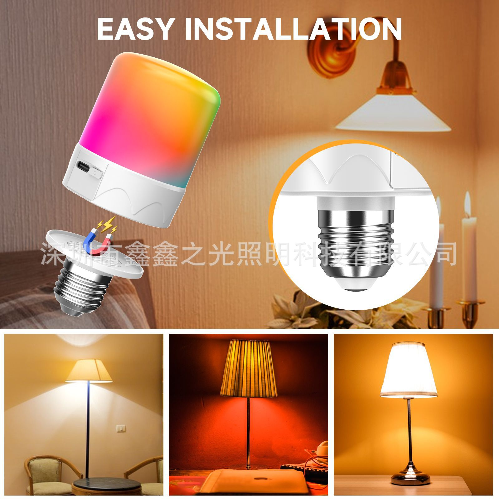 新品led充电应急灯泡 磁吸床头灯橱柜灯E27遥控定时调光灯