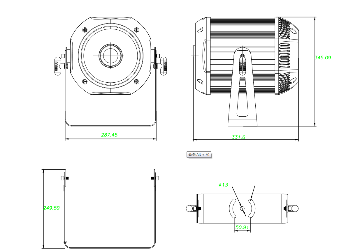 灯泡规格:LED100W/150W/200W/300W欧司朗芯片