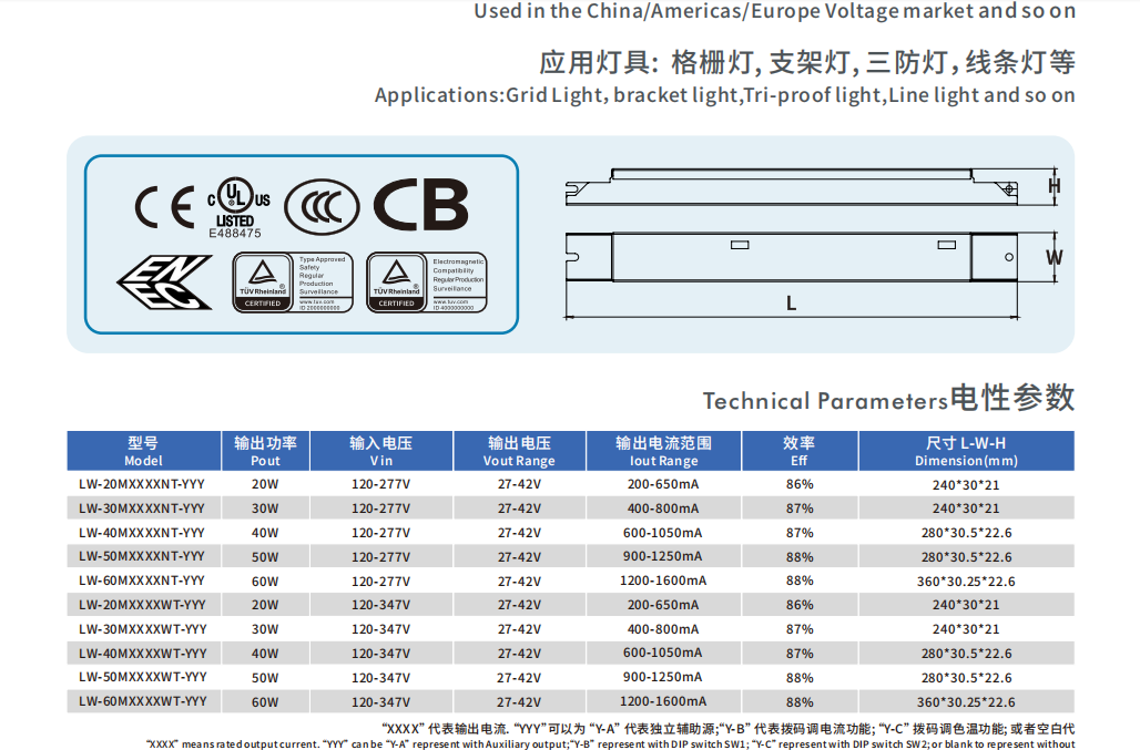 • 应用 路灯、泛光灯、投光灯、其他户外
