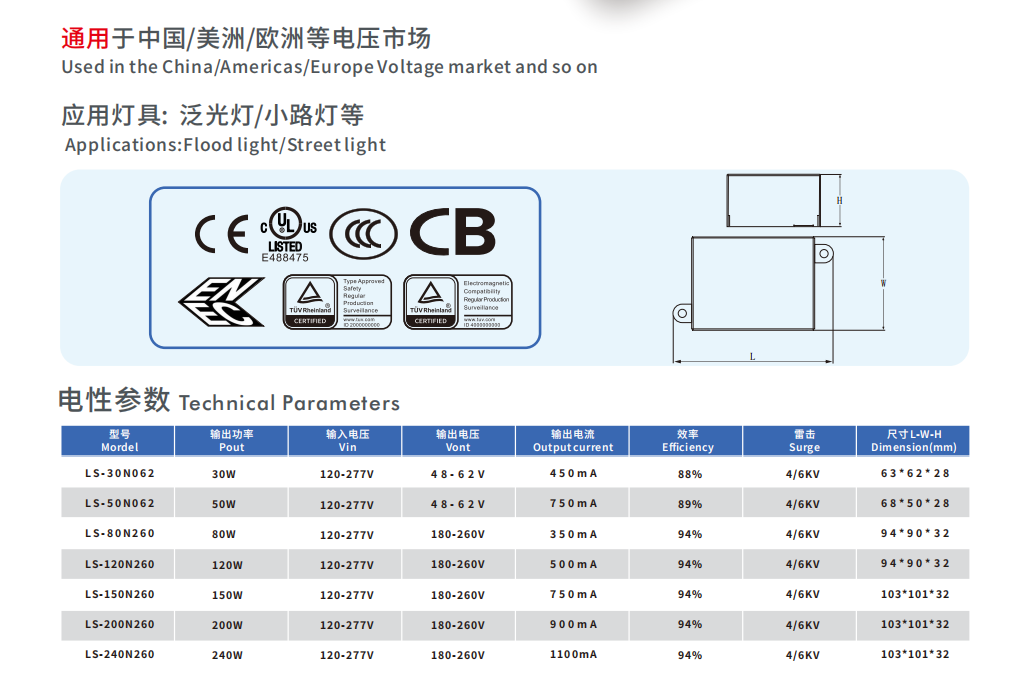 • 应用 路灯、泛光灯、投光灯、其他户外