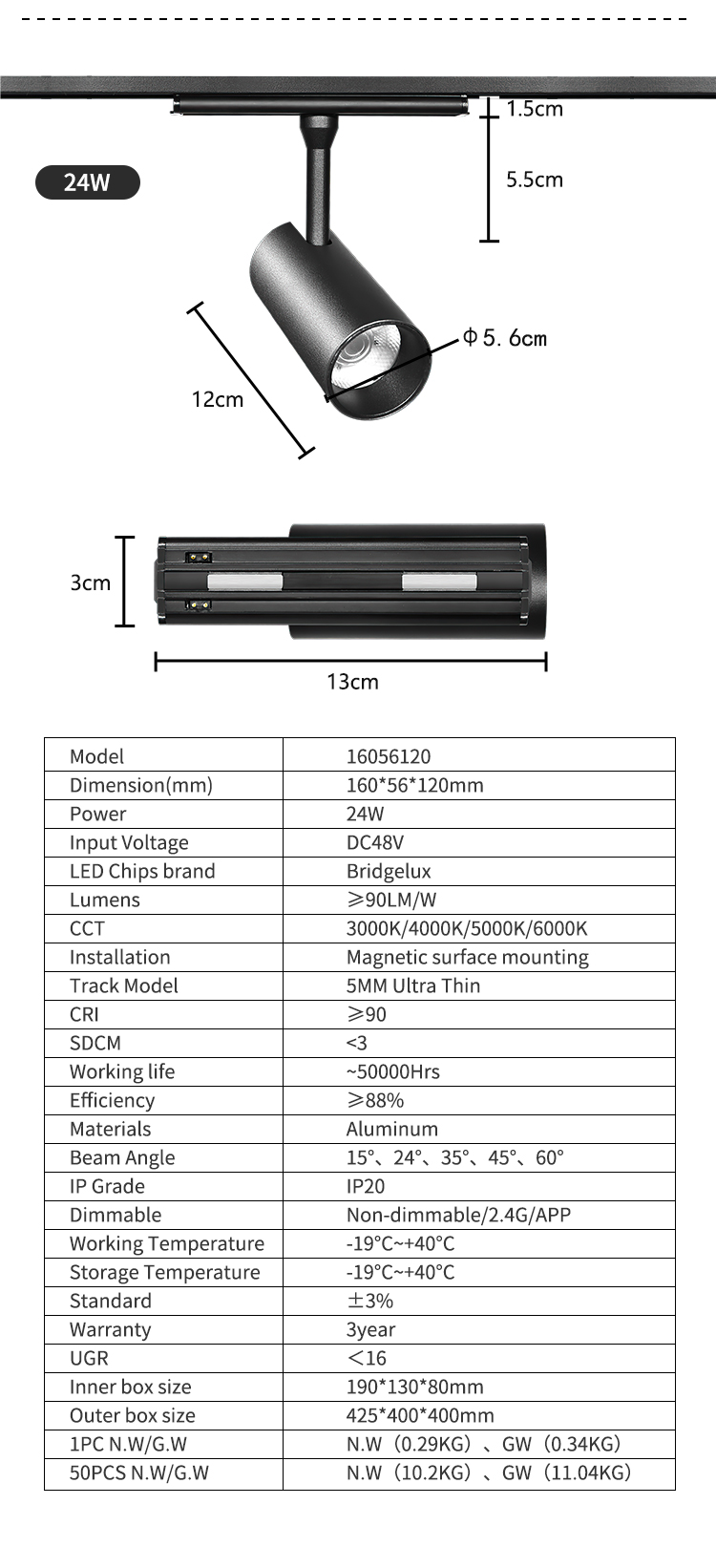 • 色温(k) 2800-6500K可调