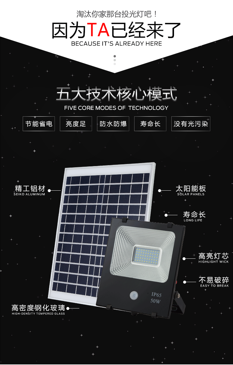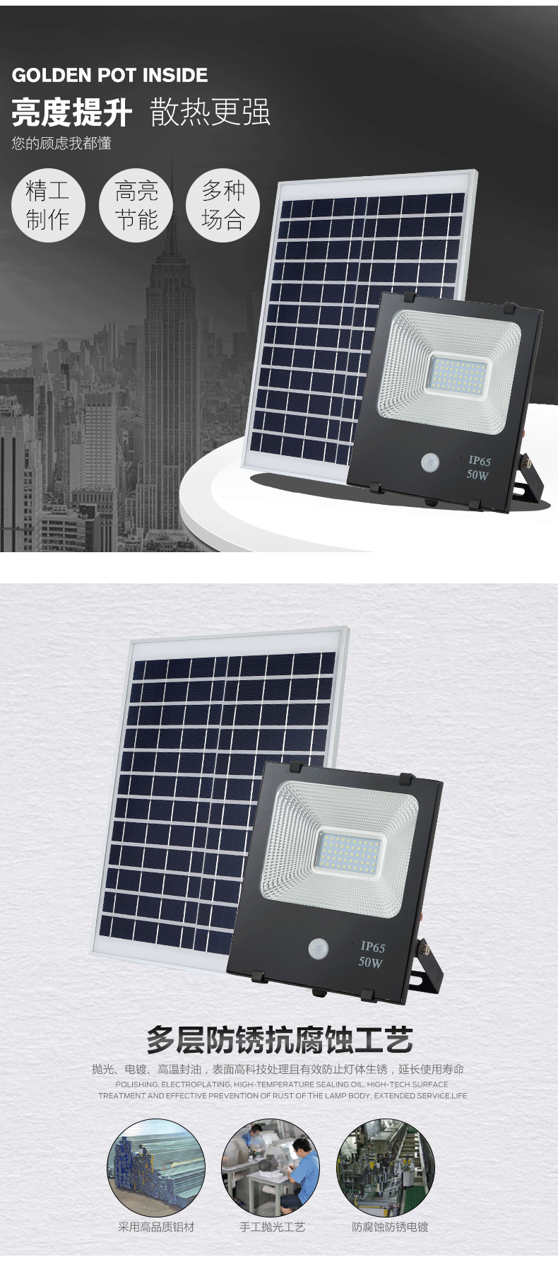 10w 20w 30w 50w 太阳能人体感应投光灯PIR sensor floodlight