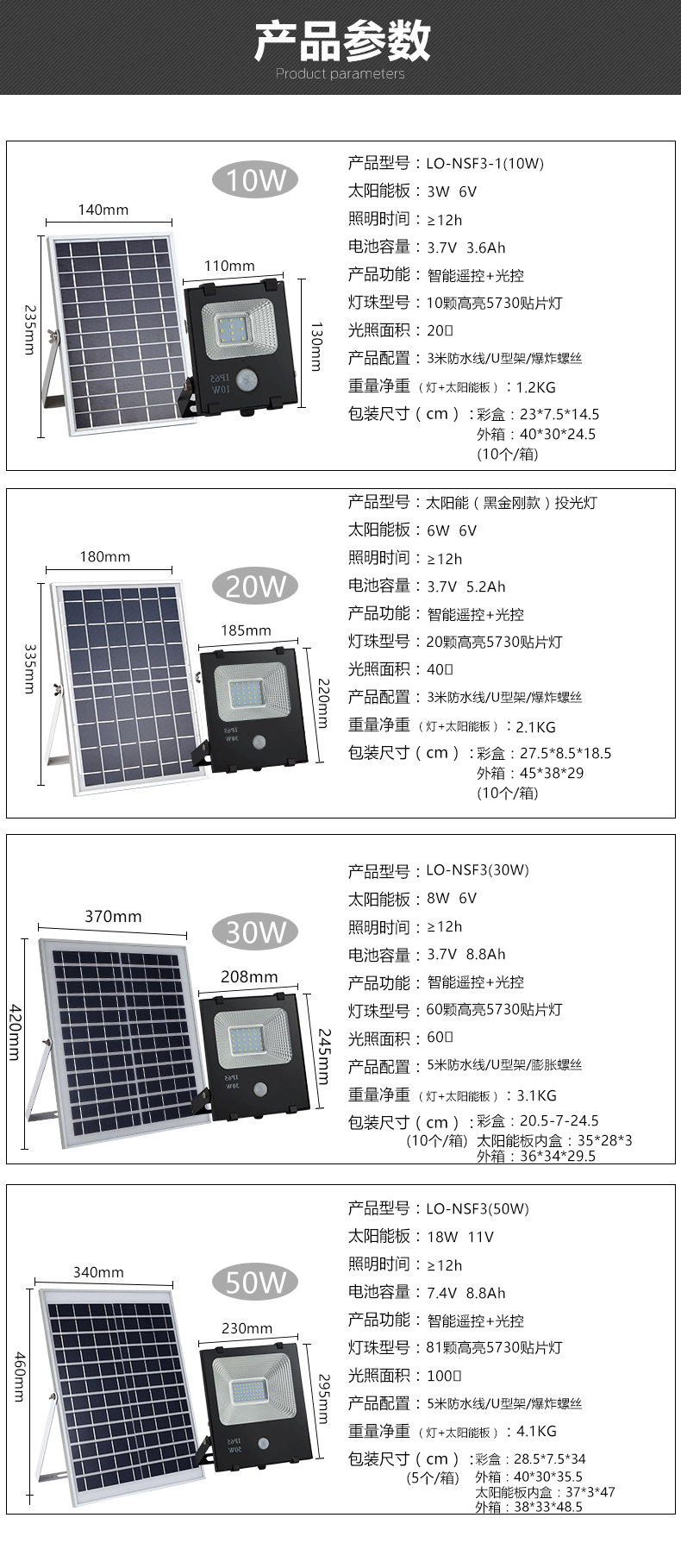 • 感应方式 光控、PIR感应、遥控