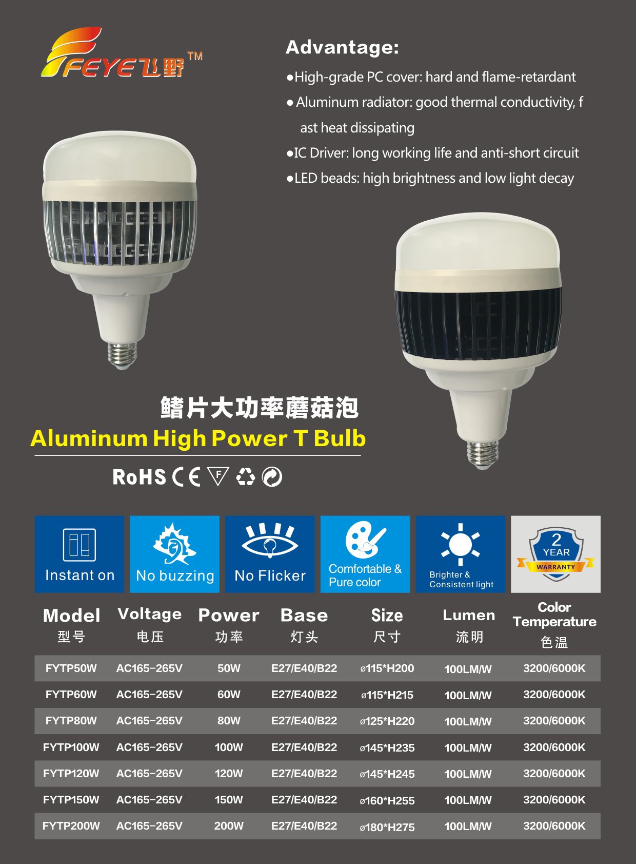 • 灯头接口 E27、B22、E40