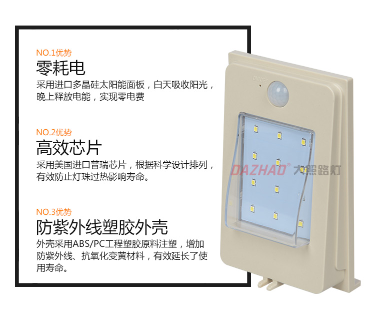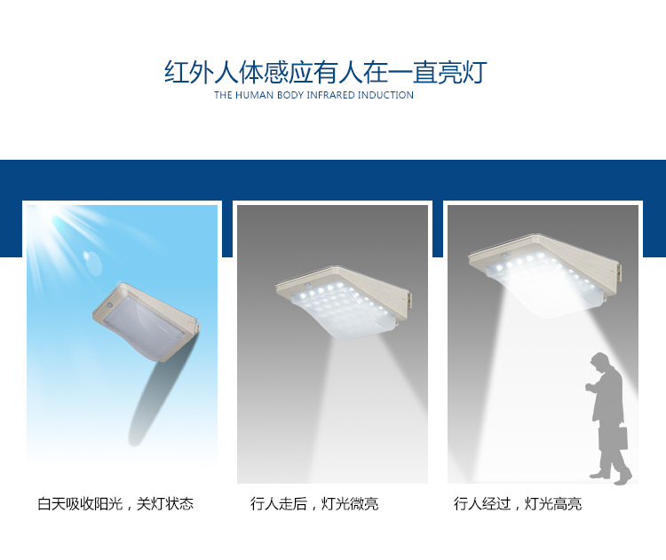 厂家直销优质LED节能户外新农村2W智能人体感应太阳能产品壁灯