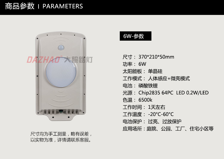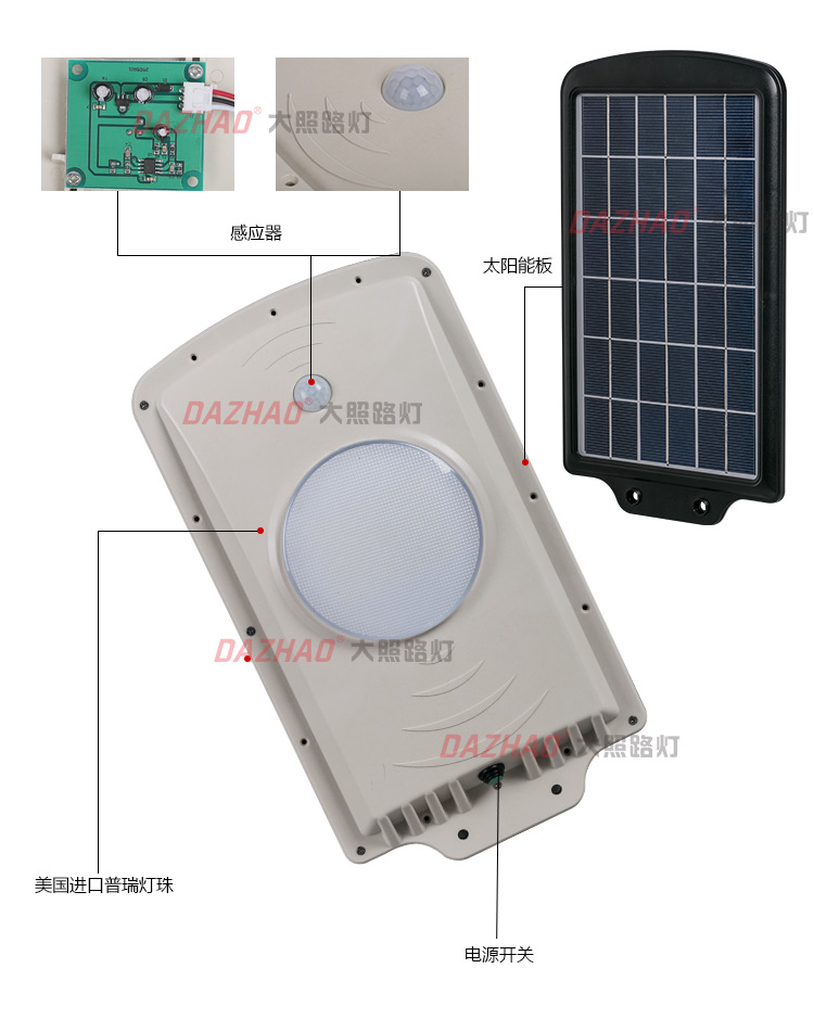 LED太阳能路灯头6W智能人体感应户外公园小区道路太阳能小路灯