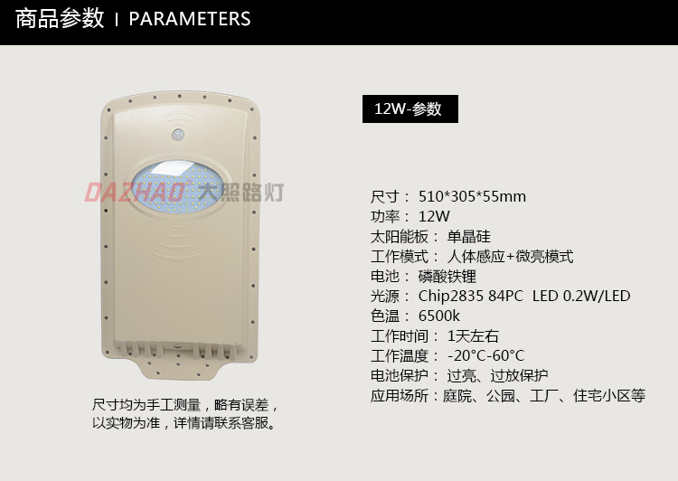 特别定制款小路灯12W一体化太阳能感应灯LED太阳能路灯led路灯