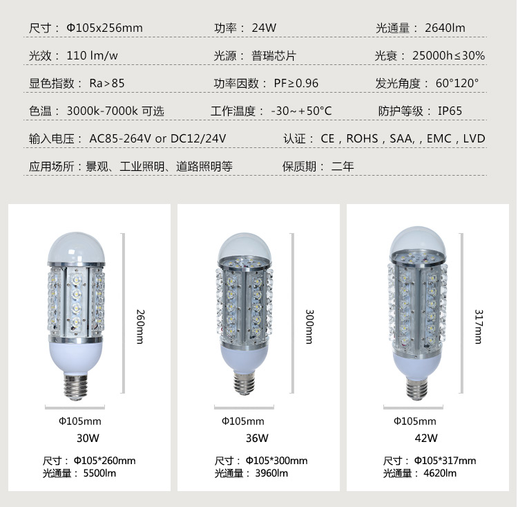 LED玉米灯E27 E40螺旋口 小区 街道 各种大型商场超市