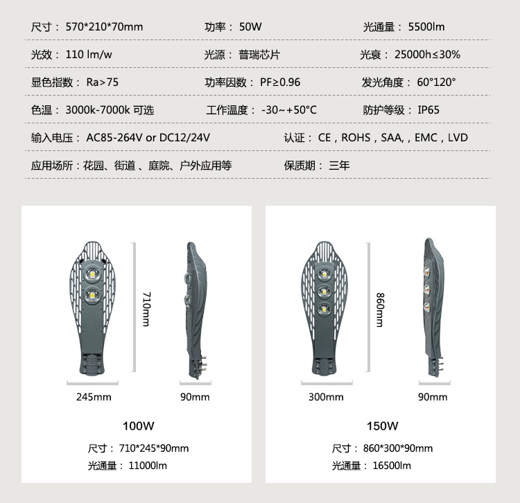 路灯厂家LED路灯头新款普瑞集成50W100W150W压铸网拍海豚路灯