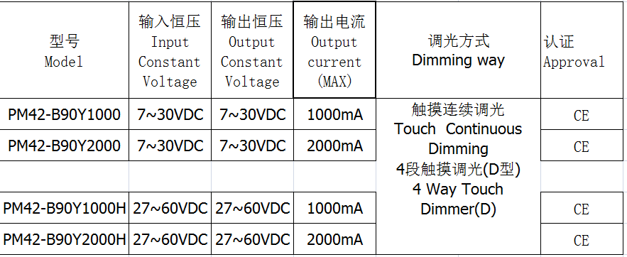 PM42-B90Y 一体式恒压输入恒压输出LED触摸调光驱动