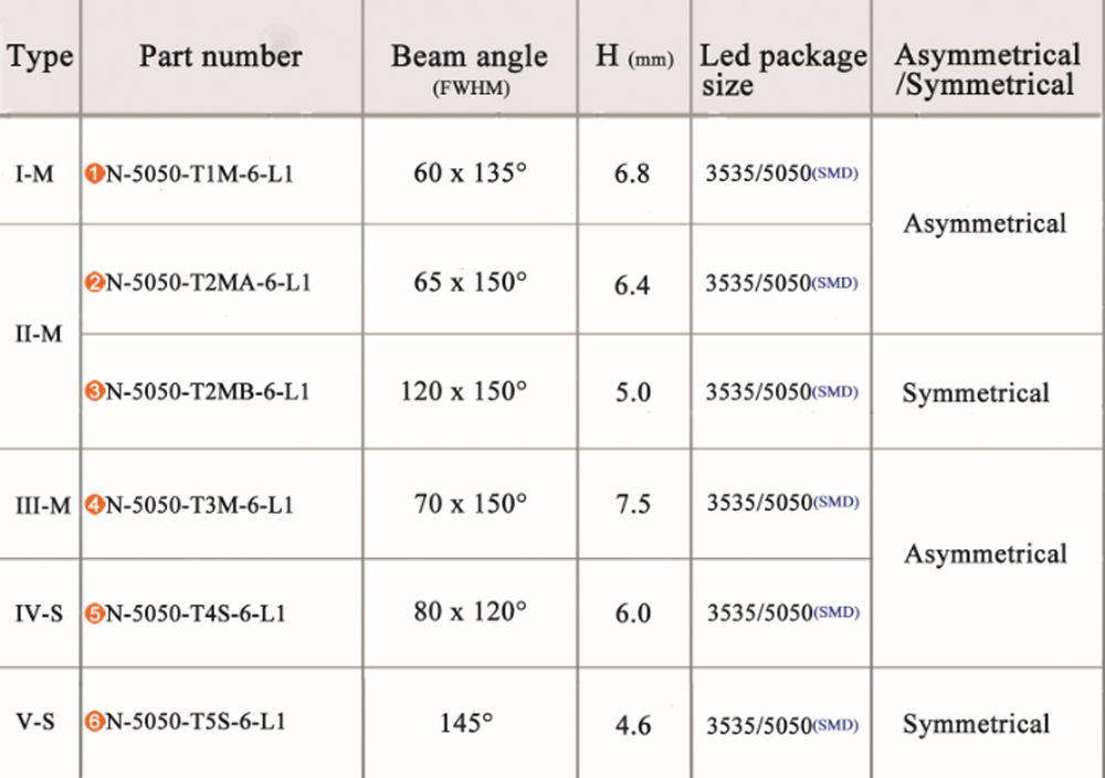 > 配套 > 零配件 > LED透镜 >朗一曼 路灯透镜 N-5050-T3M-6-L1-C1
