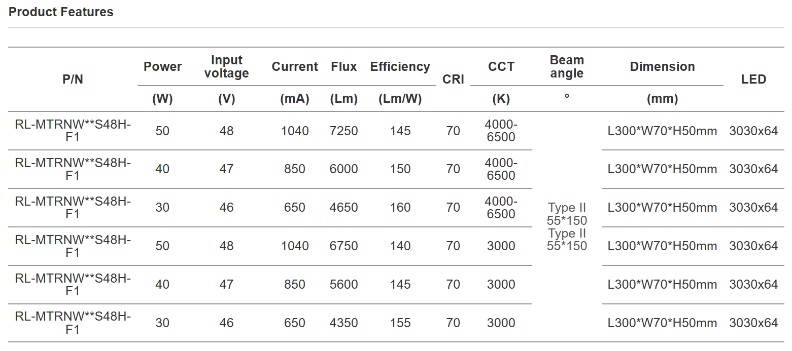 • 色温(k) ≤2800K、2801-3200K、3201-3800K、3801-4200K、5001-6500K、4201-5000K