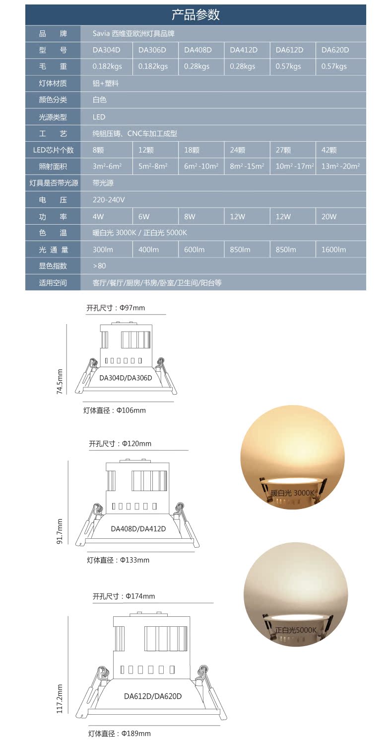 Savia 北欧客厅背景墙灯具玄关浴室天花灯3寸防水防雾LED筒灯3W4W