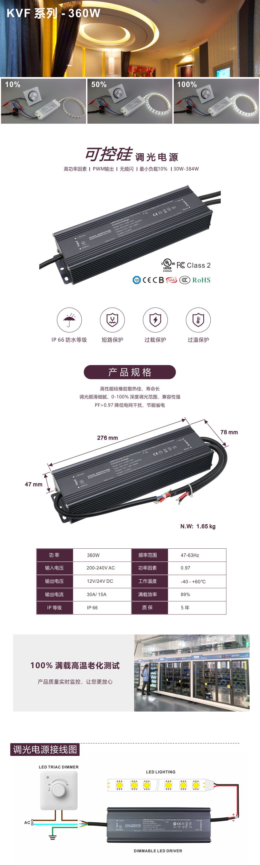 圣昌调光电源 360W 12V 24V 恒压 可控硅LED