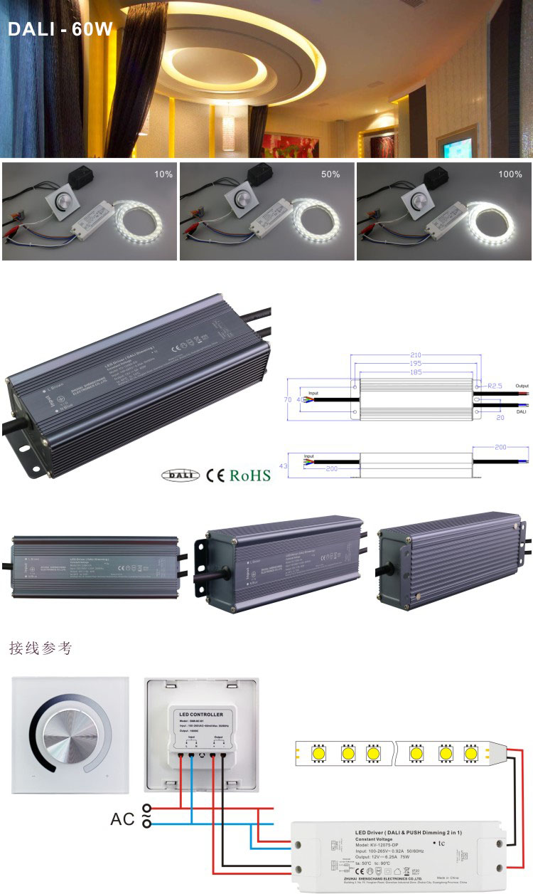 > 配套 > 电器附件 > LED驱动电源 >圣昌60W DALI调光 12V 24V 36V 48V 恒压LED调光电源