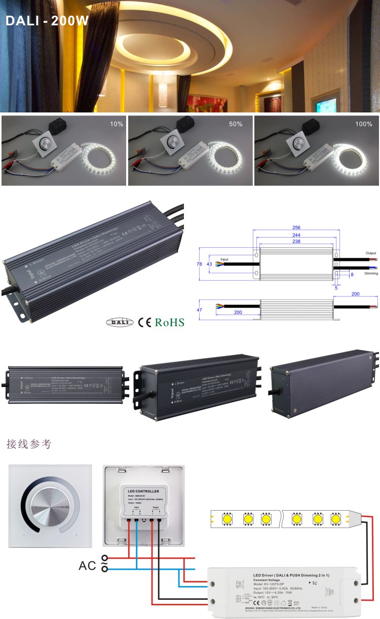 圣昌DALI调光200W 900-6500mA 25-210V恒流 LED调光电源