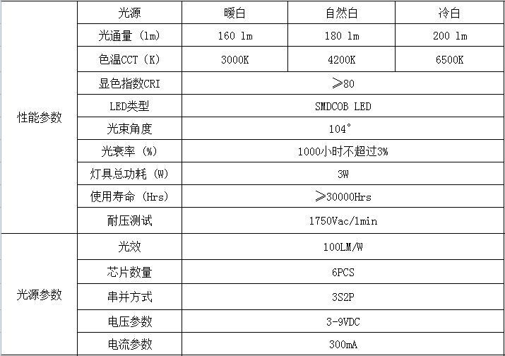 • 色温(k) 2801-3200K、5001-6500K、3801-4200K