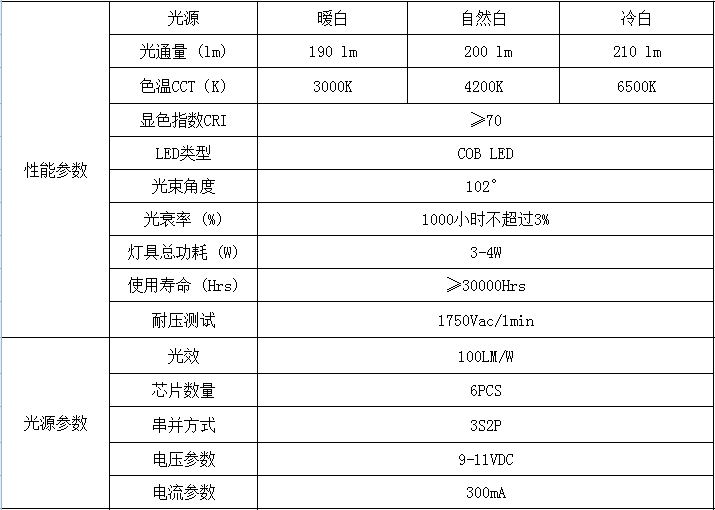 • 色温(k) 2801-3200K、5001-6500K、3801-4200K