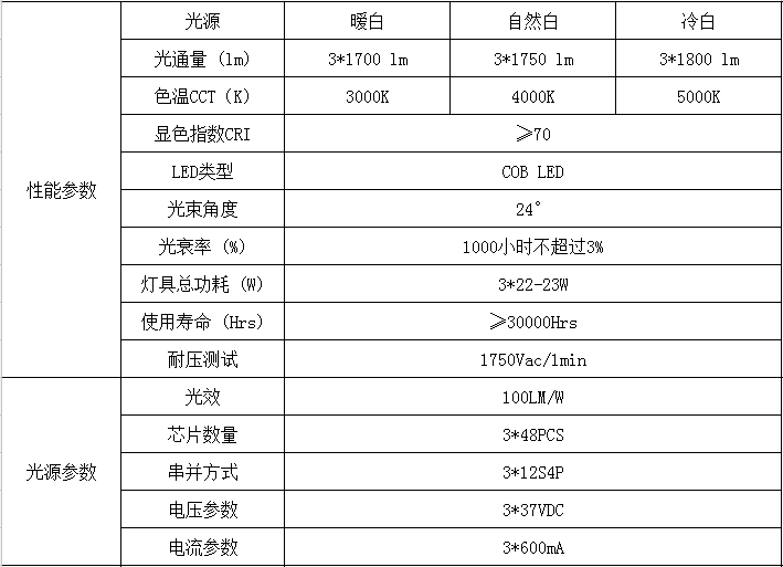 • 色温(k) 2801-3200K、4201-5000K、3801-4200K