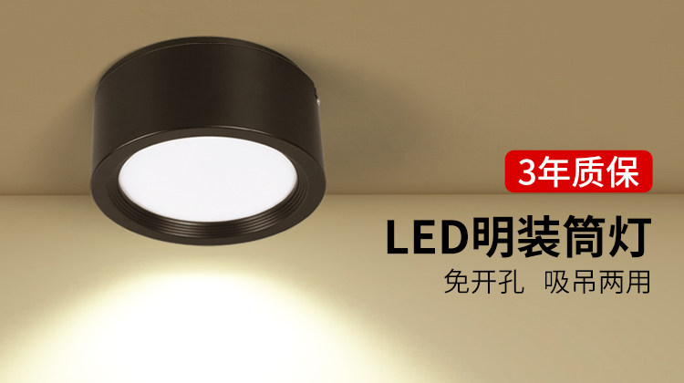 led筒灯明装免开孔COB小吸顶灯10w客厅背景墙卧室玄关过