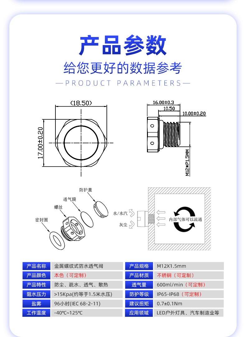 防水透气阀 金属LED呼吸器螺纹式 电机机械用防油透气