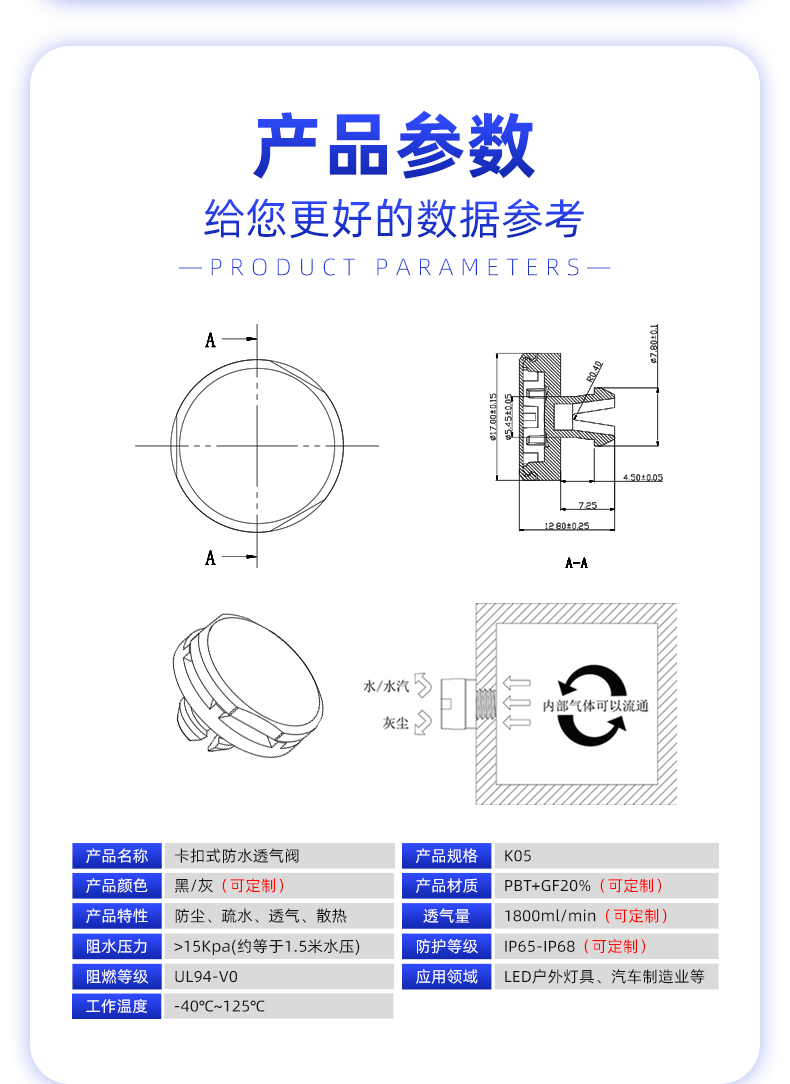 厂家供应塑料卡扣式防水透气阀 汽车ECU电控防水防油透气阀