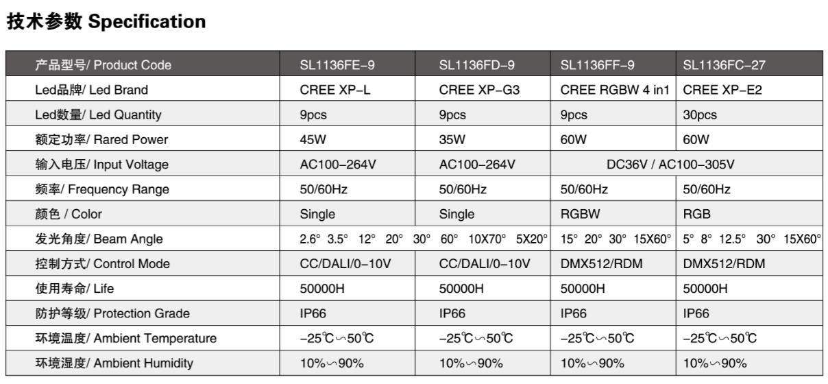 • 产品型号 SL1136U/SL1136F/SL1136Z/SL1136H/SL1136S