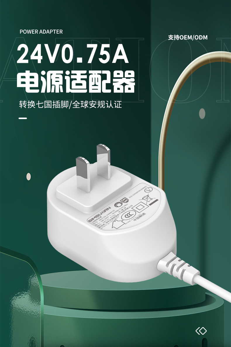 18W插墙式适配器护眼台灯3C电源24V0.75A电源适配器