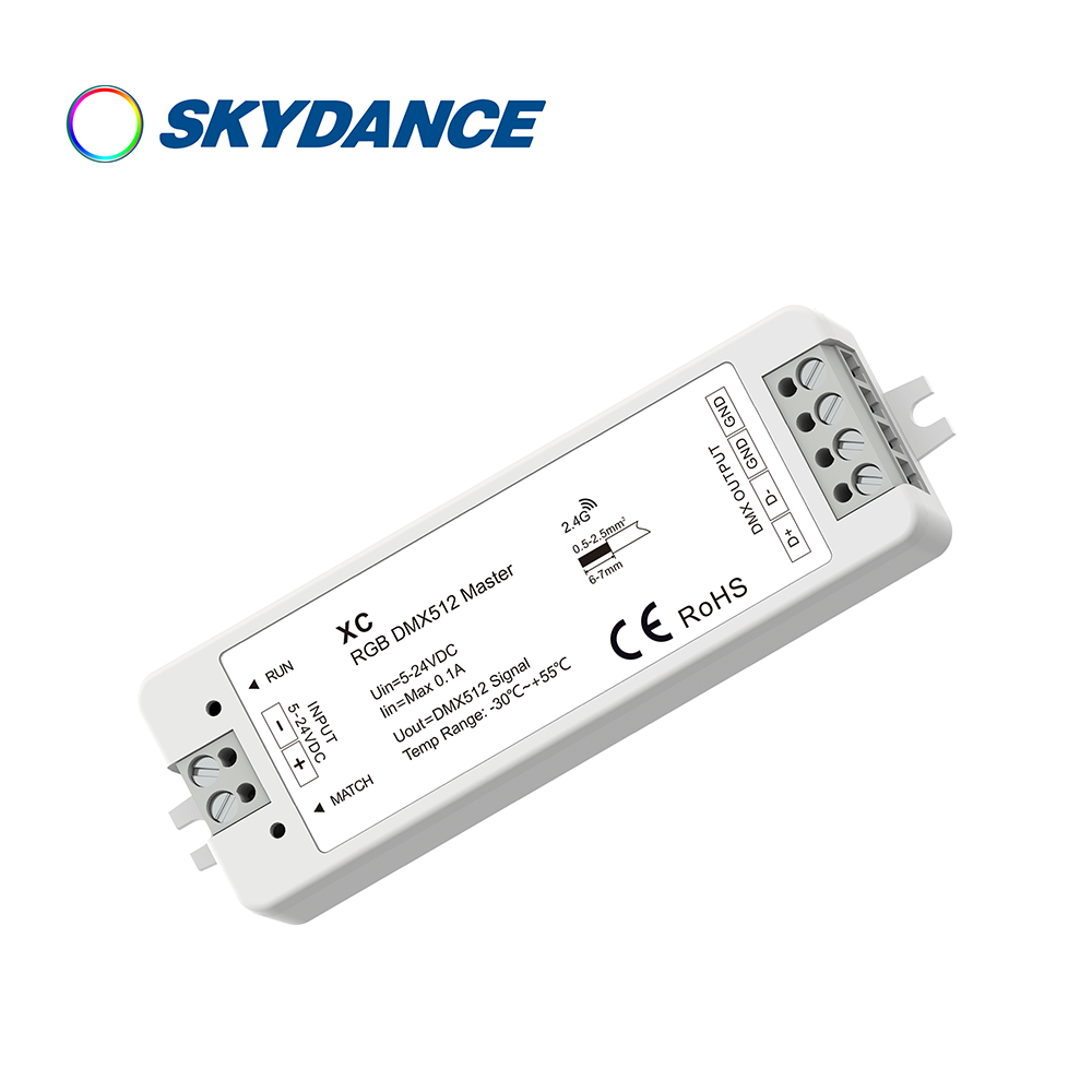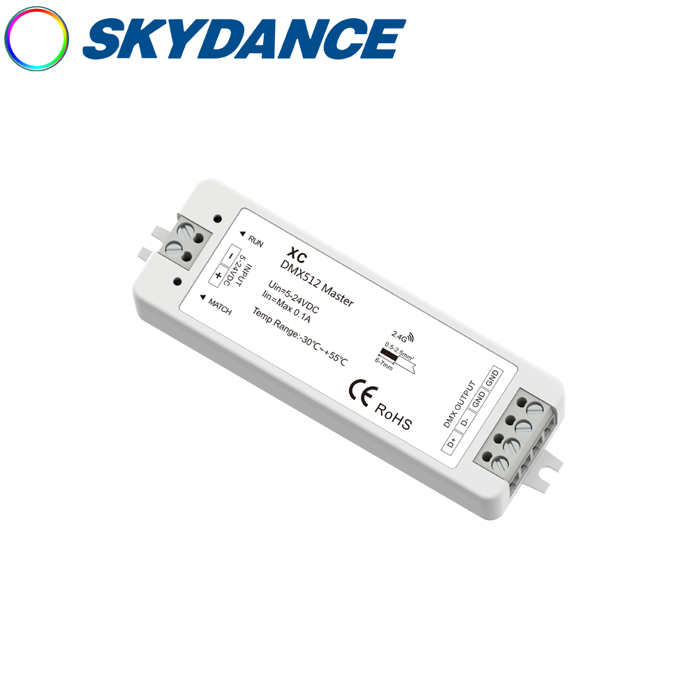 ● 本产品是DMX主控,可连接多个DMX解码器,或直接控制带DMX解码芯片的RGB LED灯具。