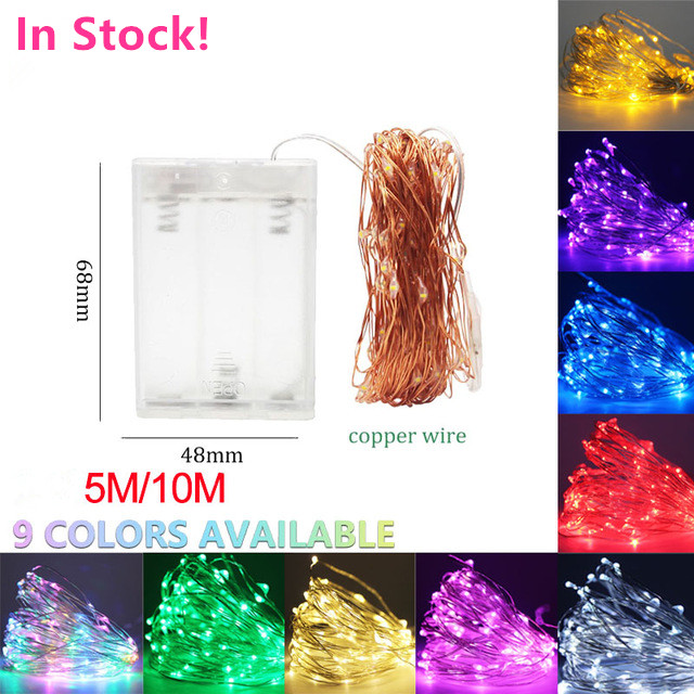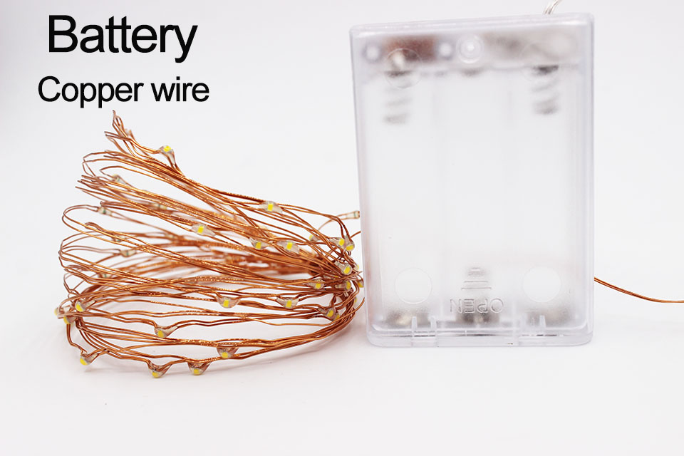AA5号电池盒款10米100灯led铜线灯串圣诞彩灯银丝灯串亚马逊直销