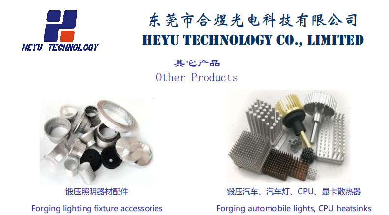 东莞市合煜光电科技有限公司专业从事锻压【IGBT铜散热器、LED铝散热器、CPU散热器、铜谐振杆、310S不锈钢谐振杆、机壳腔体、运动器材配件、动力电池外壳等】五金件;冷镦通讯基站紧固组件;连续冲压、拉伸件;CNC车床和加工中心精密五金件加工!公司一直致力于不断追求产品创新及工艺改进,拥有数台200-5000T锻压机,80-160T进口气动冲床、日本泷泽(TAKISAWA)、大隈(OKUMA)数控车床、日本兄弟(BROTHER)加工中心等精密加工设备及轮廓仪、二次元、三座标等检测设备。我们的产品广泛应用于通讯、电力电子、新能源、机械、照明等领域。本公司秉承“客户至上、品质先行、诚信为本、技术创新”的经营宗旨,以专业的技术和专注的态度,向客户提供优质的产品和优秀的服务。竭诚欢迎新老客户前来公司考察指导!