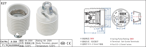 E27 瓷灯座, A-30A