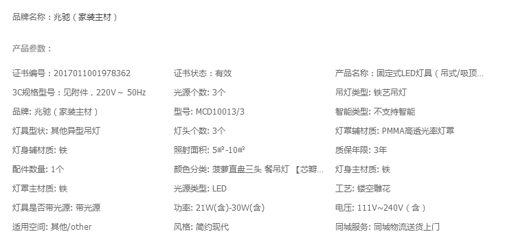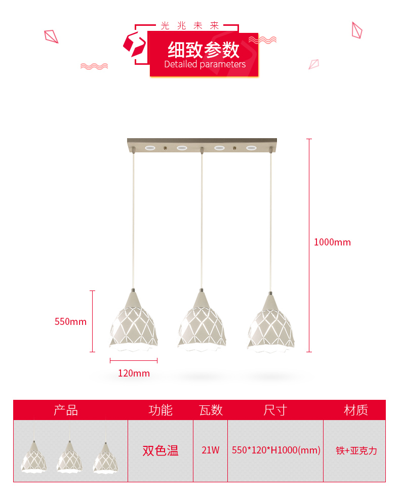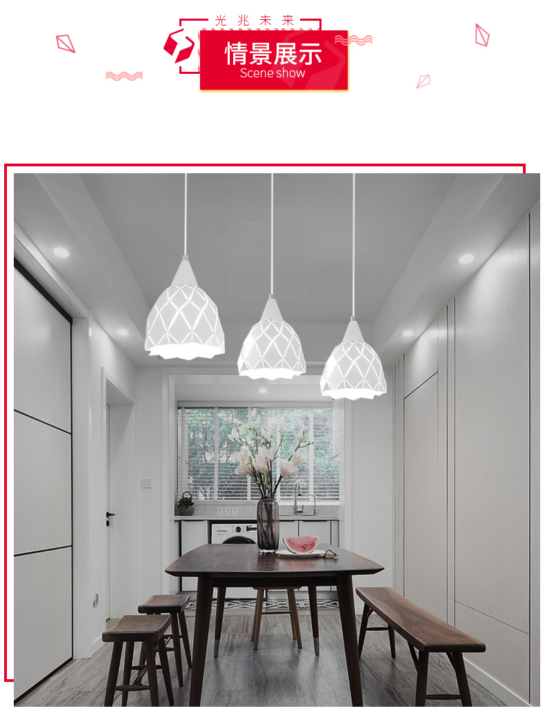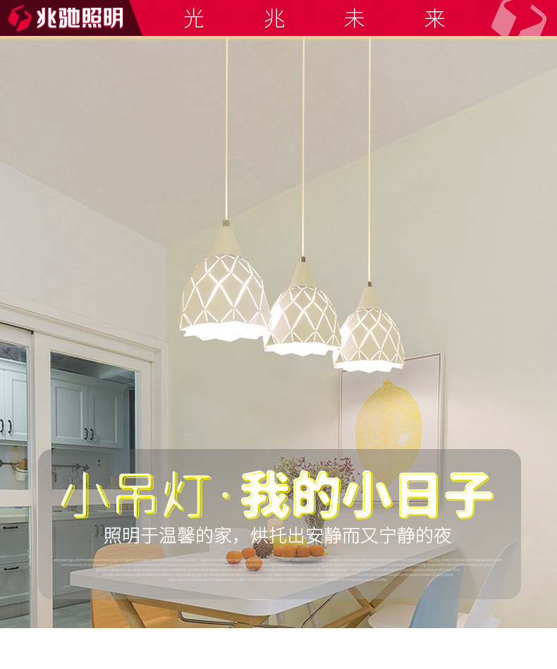 兆驰照明LED餐吊灯3头餐厅吊灯创意餐厅灯具灯饰现代简约大气吊灯
