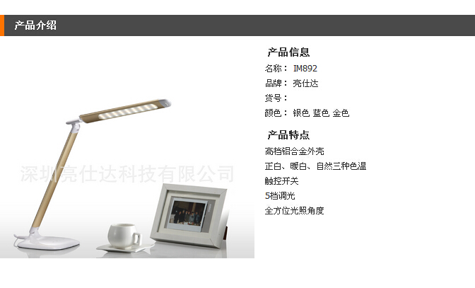 深圳市亮仕达科技有限公司是专业从事LED台灯的研发、产品的开发、外观设计、生产及销售服务的高新技术企业。公司以“质量为天,服务是利”为理念,以“建设节约型社会,实现人与地球的和谐”为宗旨,与时俱进,做照明行业再次革命的领航人。深圳市亮仕达科技有限公司走科技创新之路,亮仕达已通过UL与CCC 验厂,并拥有CE/FCC/GS/CCC/ROHS证书,公司靠企业自身强大的文化内涵、精悍的人力资源、精湛的工艺技术,过硬的产品质量,诚信的经营方式,树立了亮仕达良好的企业形象,真正“让品质写出我们的尊严”。 我们期待与您精诚合作,发挥我们专长,为您的事业添砖加瓦。