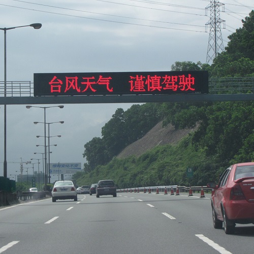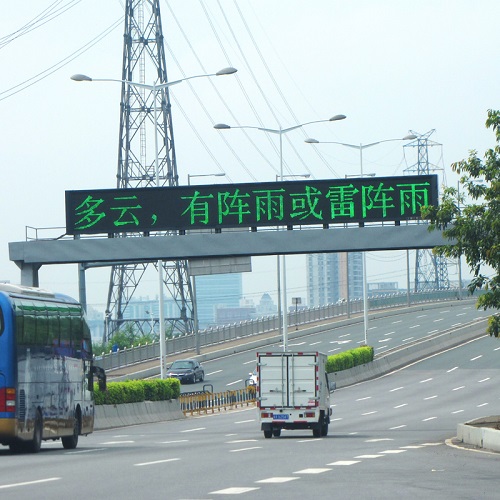 门架式可变信息标志屏是交通状况及交通诱导信息发布的重要设备,它是以LED发光器件为基本显示单元的交通信息显示设备,具有图形及文字显示作用。根据交通、天气及指挥调度部门的指令信息,操作员可向可变情报板发布各种通告和信息,从而有效地对交通流量进行诱导,提高路网的交通运输能力,为驾驶人员安全快速行车提供优质服务。